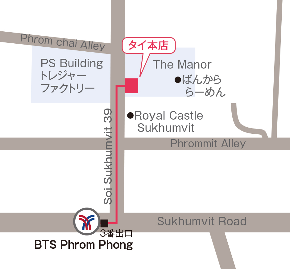 32/1 The Manor Sukhumvit 39 Klongton Nua,Wattana Bangkok,10110 Thailand (マノール スクンビット 39 クロントン ヌア ワッタナー バンコク 10110 タイランド) <アクセス> BTS「プロンポン」駅3番出口より徒歩10分 |