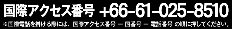 ※国際電話をかける際には、国際アクセス番号-国番号-電話番号の順に押して下さい。※国際アクセス番号はお客様がご利用のサービス(OCN、NTT、KDDIなど)によって違います。ご利用サービスのホームページなどで確認して下さい。 |