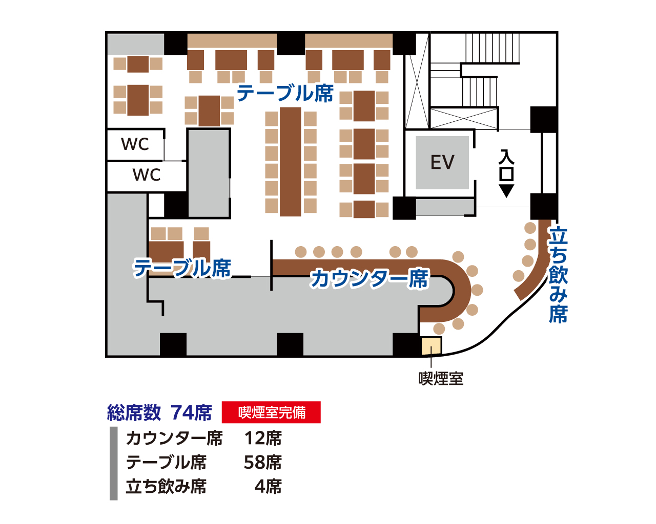 総席数:74席 最大宴会人数:12名 個室:なし 全席禁煙 配席図はこちら 【お席のご利用時間】 日~木:3時間(2時間半L.O.) 金・土・祝前:2時間半(2時間L.O.) ※コースの場合、各コースに準じます |