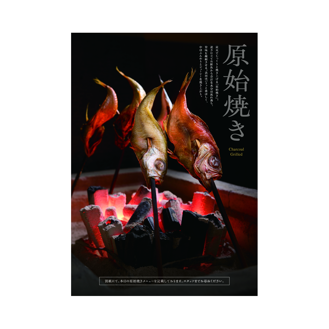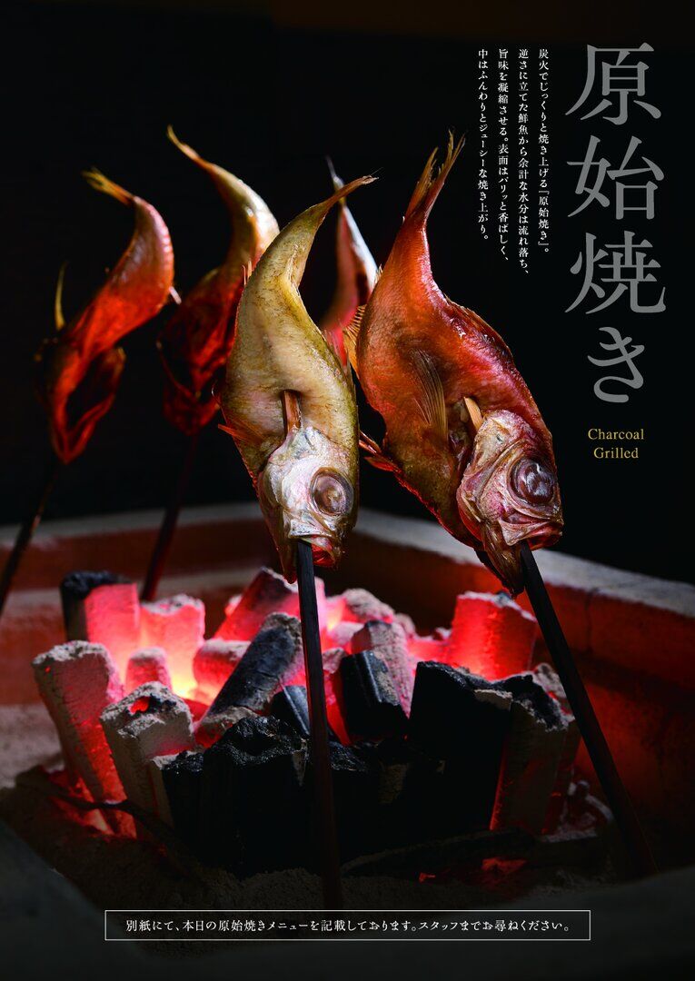 炭火でじっくりと焼き上げる『原始焼き』。