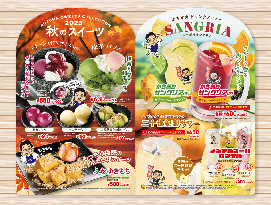 ・店舗によってメニュー内容が異なる場合がございます。詳しくは各店舗へお問い合わせ下さい。
